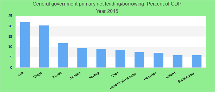 Primary net lending/borrowing is net lending (+)/borrowing (?) plus net interest payable/paid (interest expense minus interest revenue). Percent of GDP.